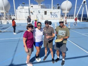 Pickleball dominated much of my free time. Between a session at a municipal gym in Fort Lauderdale and many games onboard the cruise ship, my paddle saw plenty of action. Holland America even hosted three tournaments; I entered two and won both. My partner, Carl, and I found a great rhythm, even knocking out a couple of 4.0 (intermediate-to-advanced) teams. The championship prize? A wooden tulip that now sits proudly in my collection of pickleball medals.