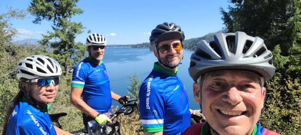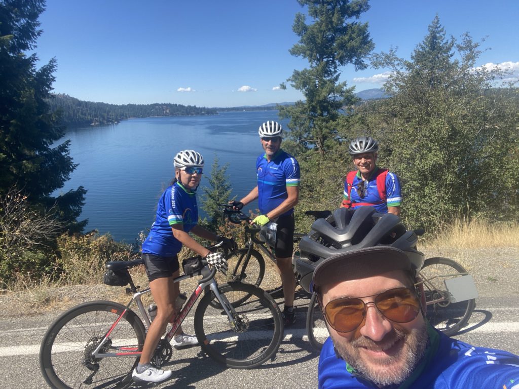 Liz and Rudy rolled into town last night and Liz was ready to join us on Day 2. Today’s ride was extra convenient because we started from the house. We were able to get an extra bit of sleep and felt more relaxed before putting rubber on pavement. Mexican Factory was closed so we had to settle for burritos from a coffee shop. Ride fuel, but not nearly as good as the last burritos. Rudy joined us on his e-bike for the start but quickly realized we were not headed to Lake CDA so he turned back. Nope, we were off to explore another lake — Hayden Lake.