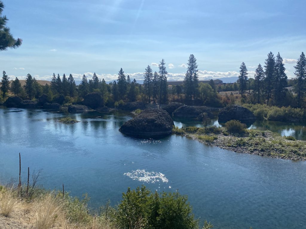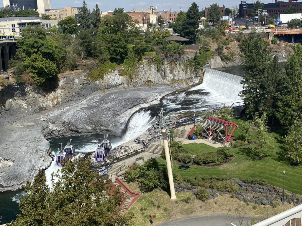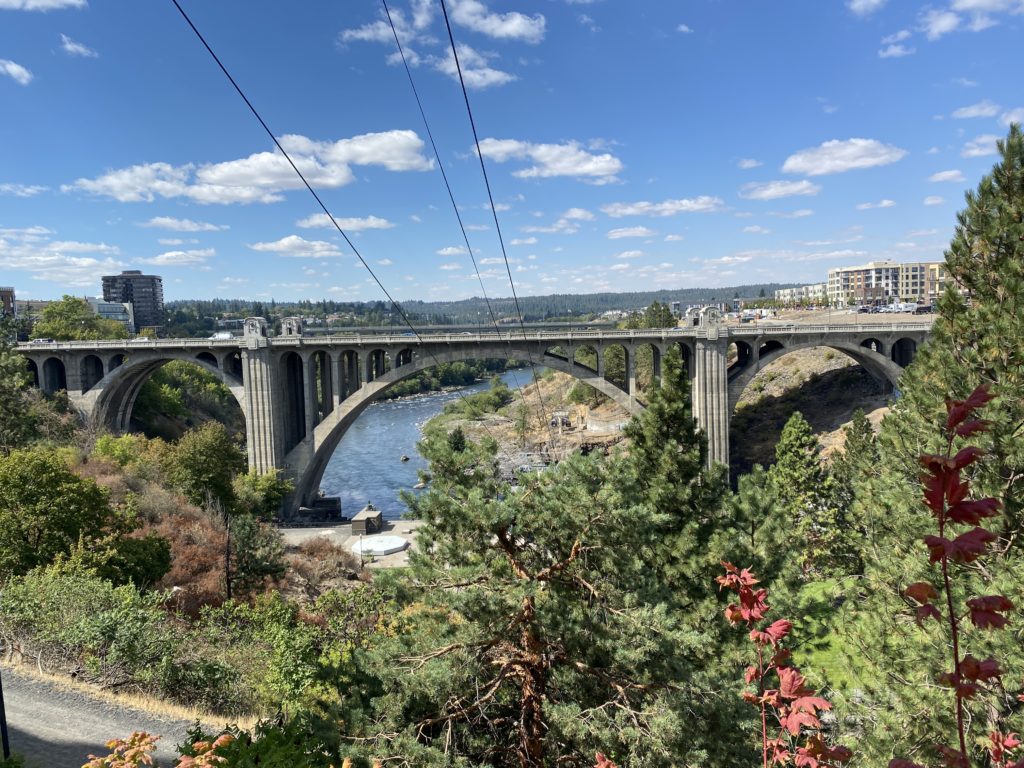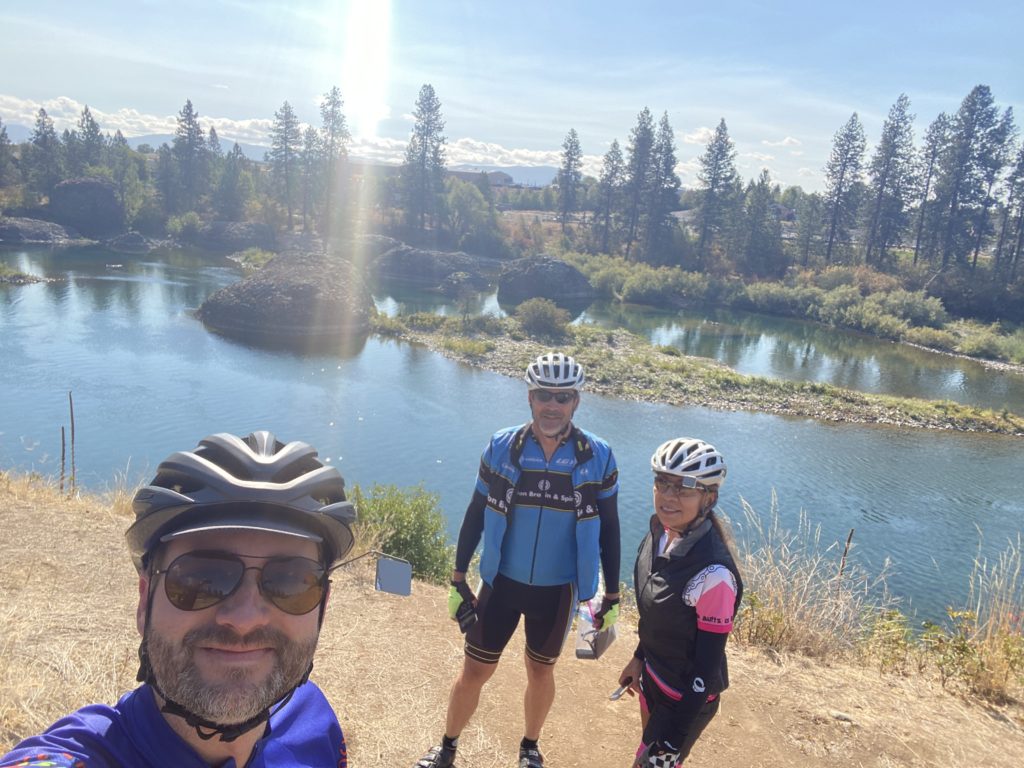 Our last ride day. Bittersweet. While I love riding, after 3 long, challenging rides, my legs and butt needed some R&R. But not yet. Larry decided to drop and do a solo ride to Wallace, Idaho, so he and Elaine could explore the town he grew up in. Larry saw elk on his ride and we just saw farm land 🙂 This route disappointed over the first 10 miles or so. Just farm land and a big climb on the side of a busy highway. However, once we reached the Spokane River and picked up the Centennial Trail, the rest of the ride was filled with spectacular views of the river and the canyons it carved out over millennia.