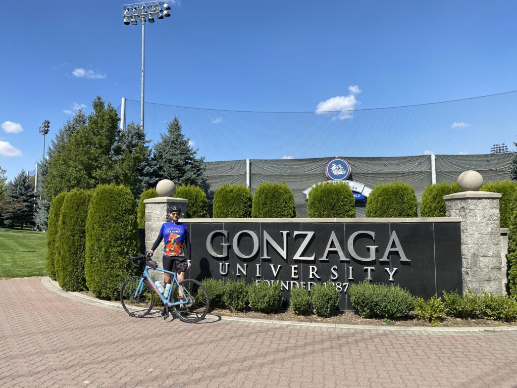 We rode through downtown Spokane and all of the college campuses located here. Surprising to see this many colleges in a small-ish town — Gonzaga, Washington State, Eastern Washington. We stopped at Dick’s Drive-In for burgers and shakes for lunch. I thought it was the same chain as the Dick’s in Seattle, but my Seattle friends harshly corrected me. Yeah, the Spokane Dick’s is nowhere near as good as the Seattle Dick’s 🙂 After lunch we continued to cruise through Spokane, stopping at Upper Falls and a giant Radio Flyer wagon turned into a kid’s slide. The tires were nearly as tall as me.