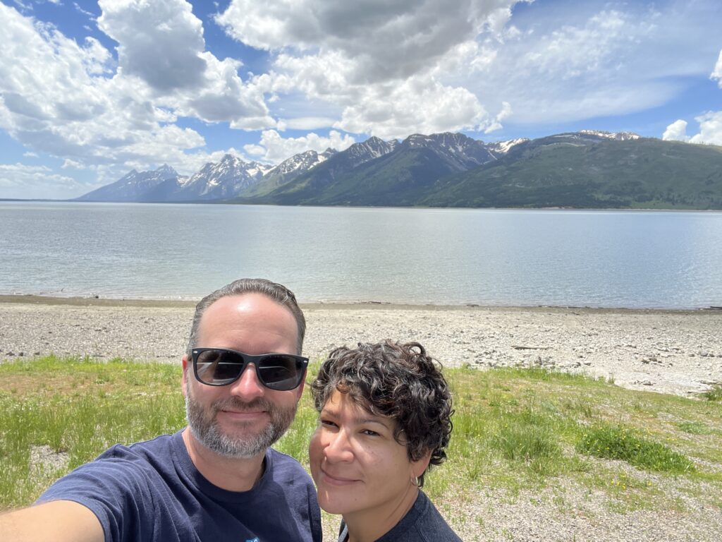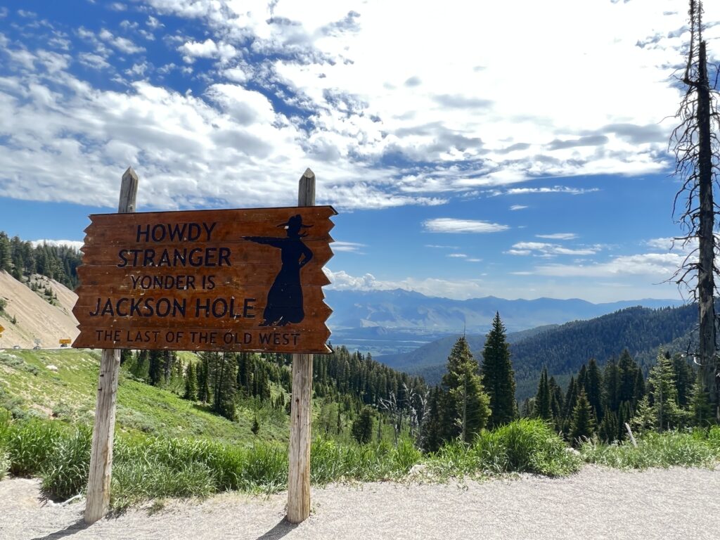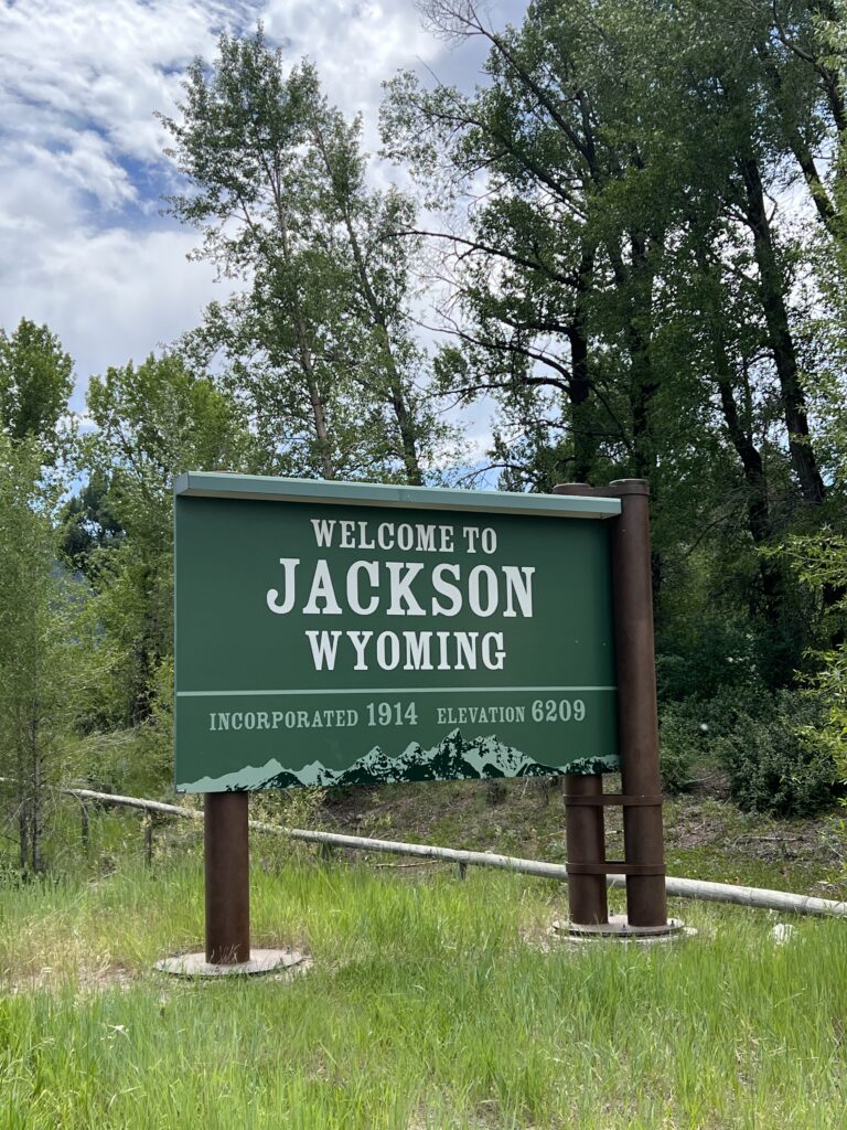 On our final full day at Grand Teton NP, we rode our bikes from the park to the next town of Jackson, WY. I love traveling by bicycle. The open air, the sense of adventure and exploration, the sense of accomplishment. Very few things in life bring me as much joy. We stopped to take a photo in front of the Grand Teton sign. What is it with people’s obsession with signs? Is it if you don’t get a photo of you with the sign than you really didn’t go there? I don’t know. We usually skip the sign photo but this time we were riding by it so why not? 🙂 Next we stopped at the Jackson Visitor Center — very cool little nature/wildlife museum and art exhibit. We ate lunch at Stillwater Brewing Company — while we don’t usually take photos of signs, we always hit up local breweries 🙂 After a light meal, we saved room for an amazing pastry at Persphone Bakery. And finished off the culinary experience at Moo’s Ice Cream. Found a really cool T-shirt shop called Lee’s. Bought a Jackson shirt because that is about all I could fit in my jersey pocket for the ride back to camp.