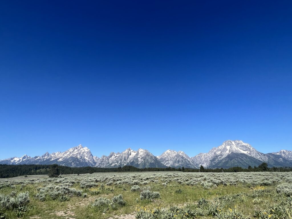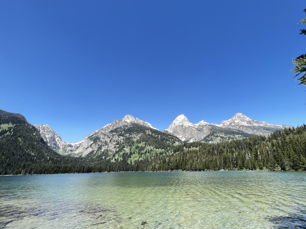 First up, we hiked Taggart and Bradley Lakes. Amazing views of the mountains from multiple lookouts along the trail. The trail followed along a crystal clear creek complete with a bridge crossing. Very few people on the trail for the part that went to the further of the two Lakes — Bradley. The shorter stretch from Taggart Lake back to the trailhead had a fairly constant flow of people. Still a wonderful day.