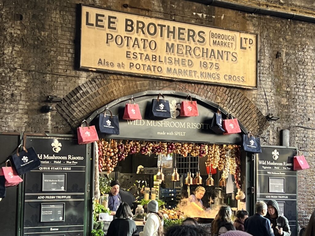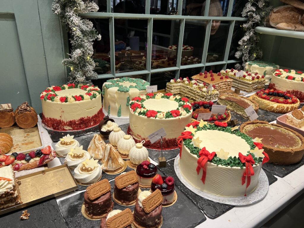 The markets in London are incredible—food, Christmas, artisan, you name it. At the Covent Garden Christmas Market, we sipped a nice mulled wine. As we walked, the spectacular treats in the EL&N Deli & Bakery window tempted us into stopping for honey cake and a goat cheese focaccia. The Leicester Square Christmas Market leaned into a German theme with pretzels, grilled brats, and an ice rink.
