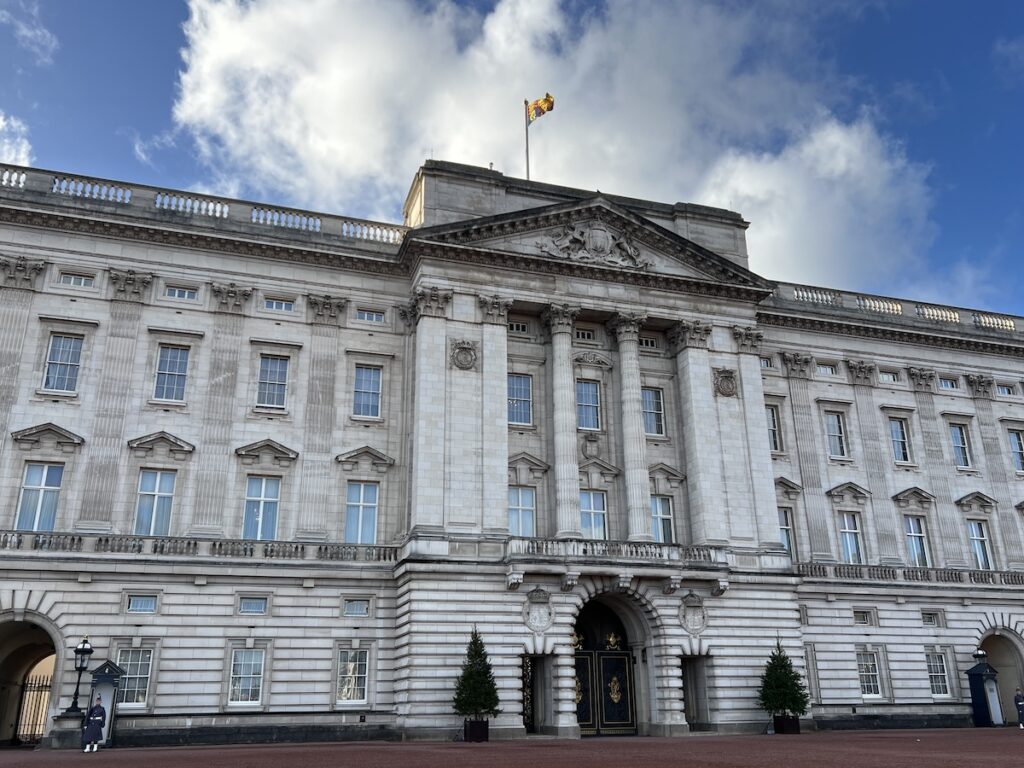 At the edge of St. James Park stands Buckingham Palace. King Charles’s standard (flag) flew above the roof, signaling his presence. Standing at the gates, I couldn’t help but picture scenes from The Crown where the royal family appears on the balcony for momentous events like weddings or the Queen’s Jubilee.