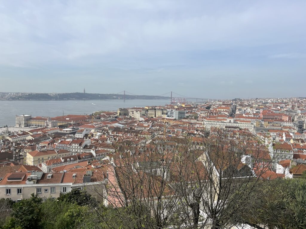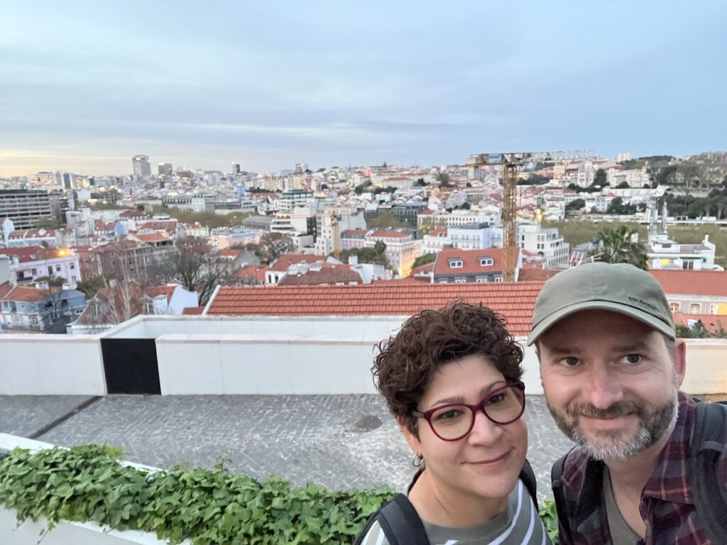 Once settled into our accommodations, we hit up LX Factory, and first impression was “am I in Portland?” An old warehouse district converted into restaurants, bars, including a rooftop bar, and walkways lined with local artisan stalls selling crafts. We enjoyed octopus tacos — first time, feeling a bit adventurous — very good. We finished the evening walking around the Bairro Alto and Principe Real neighborhoods — great views of the city and a nice spot to take in a sunset.