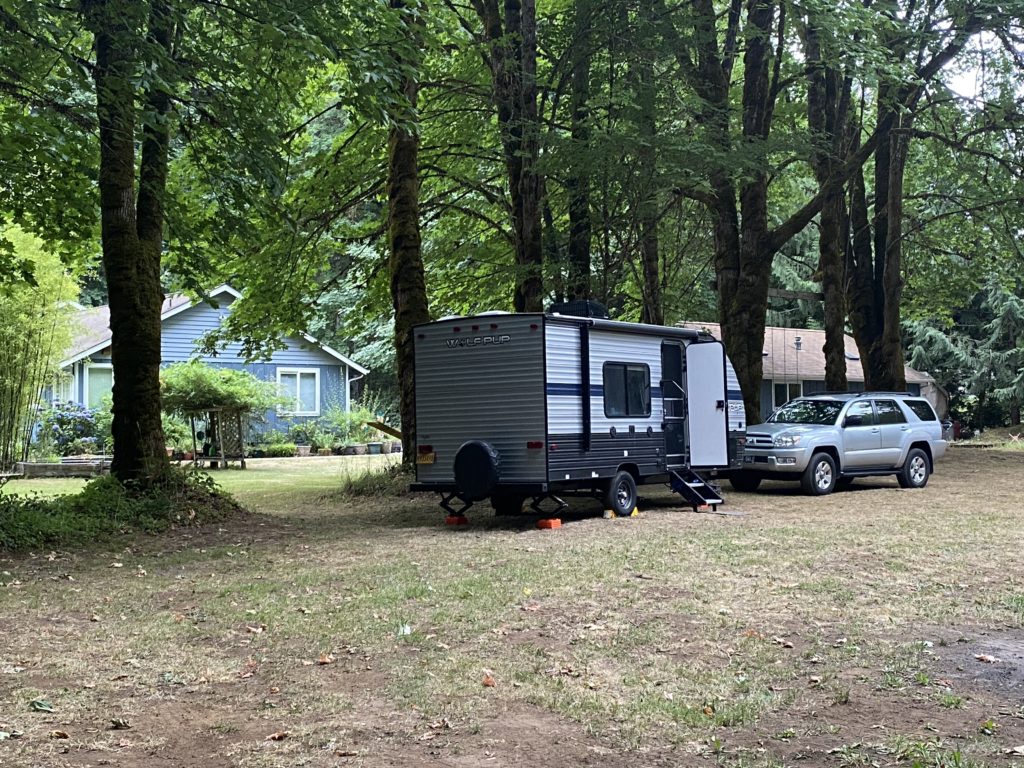 This little side trip involved a two-night boondock in Shelton. This time we had no hookup at all and ran off the battery. We thought we would have no problems since it was only a couple nights. Probably would have been fine but the battery was bad. I knew we were in trouble when the control panel was reading at 2/3 of a charge. And by the time we went to bed the first night it was fluctuating between 2/3 and 1/3. But the next morning it was back to 2/3. Definitely not looking good. The battery finally gave out in the evening of the 2nd night. The fridge runs on propane but needs a little charge to keep the pilot and ignitor going. That started acting up so had to just turn off the fridge. Then the carbon monoxide detector started faulting and chirping every 20 seconds or so. Finally just disconnected the battery. At least it was a good learning experience. And fortunately, we were heading out in the morning anyways. So we just headed out a bit earlier that next morning and went to McDonalds for breakfast. We were really roughing it — ha!!!